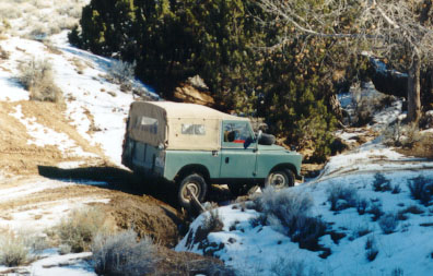 B2: Driver John Stotz and Navigator Stephen Rochna searching for a waypoint with the 1968 88" Land Rover.
