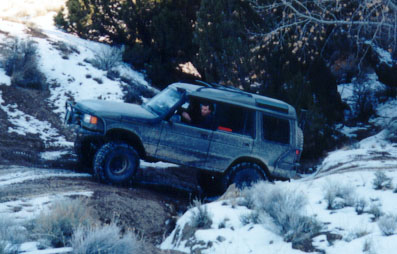 D2: Driver Kent Pollack and Navigator Angelo Ferrari III facing winter terrain with a Discovery.
