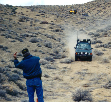 F2: Driver Wayne Vannorsdall and Navigator R. Dombrowski driving toward the final challenge after finding the waypoint in a Range Rover.