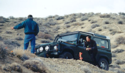 G1: Driver Nick Mit and Navigator Dave Juricic going full force on their tasks with a Defender 90 Wagon V8 Automatic.