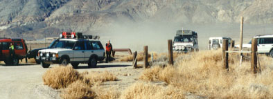Team K: Niles & Gary Hanson in Range Rover and Jim Pasichuke & Craig Milligan in Defender 90 V8 Automatic begin their Day-2 navigation.