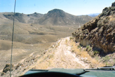 Workers idle along a rim road high above the valley floor en route to the Trophy Course.