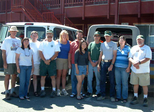 NVTR Crew: Left to Right; Bill Turpie, Bev Hegg, James Brown, John Gulliford, Kerry & Ritch Julian, April Loui, Rob Whitaker, Michael & Danielle Green and Woody. (Photo by Woody)