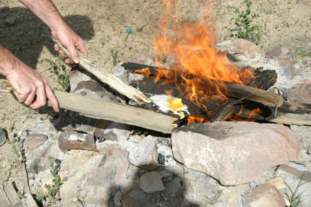 Using gas to cook eggs on "Chef Earl’s