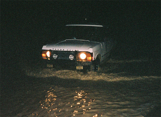 Fred Cone fords a flash flood crossing at o-dawn thirty during NVTR2005 course work.