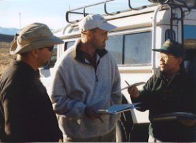 Team J1: Steve Wiedekamp (left) and navigator Thomas Brock (center) receive "Eagle Pitcher" instructions from Dan (right) just as the sun begins to set on Day-1.